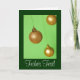 Goldene Christbaumkugeln auf grüner Hintergrund. Der enthalte Mustertext kann geändert werden, ebenso die Schriftart und -größe.