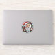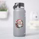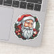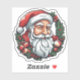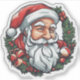 Sticker mit dem Kopf des Weihnachtsmanns und einem wunderschönen Weihnachtskranz. Digital erstellt, in farbenfrohem Cartoon-Stil.