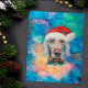 Weimaraner Breed Dog Christmas features a watercolor of a Weimaraner with a red Santa's Hat, a red Christmas Collar, and a galaxy watercolor.