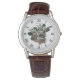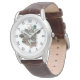 The watch looks really great! Very sharp and well done. The leather band is really nice, though for a man's watch I think it should be longer. Unfortunately, it isn't big enough for my husband's wrist but I will get a replacement because he is very excited to wear it!
