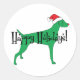 Rudolf's got nothing on this Weimaraner for the holidays. Great for Christmas, this Weimaraner sports a santa hat and is all decked out in green for the holiday season.
