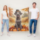 Weimaraner In Autumn Leaves Thanksgiving Art Fleece Blanket