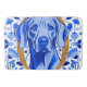 Weimaraner colourized in blue hues with a gold leaf letter "O" and a Blue and White decorative floral pattern background. This is a custom design for the Ontario Weimaraner Rescue and Assistance (OWRAssist). A percentage of the proceeds goes toward helping rescued Weimaraners.