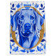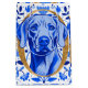 Weimaraner colourized in blue hues with a gold leaf letter "O" and a Blue and White decorative floral pattern background. This is a custom design for the Ontario Weimaraner Rescue and Assistance (OWRAssist). A percentage of the proceeds goes toward helping rescued Weimaraners.