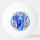 Weimaraner peering thru the letter "O" in Gold Ping Pong Ball