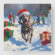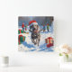 Weimaraner Running in Snow with Christmas Hat Square Wall Clock
