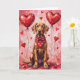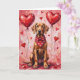 Weimaraner Valentine Dog Sitting with Hearts Red Card