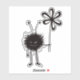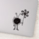 Evil creature sticker with the Evil Flower Bug in its vintage reincarnation - grinning cartoon evil character with sharp teeth holding a flower on dark vintage textured background. It's evil and kind of cute. It loves flowers... loves eating them, in fact. This evil character will make a great gift for someone who loves gothic designs and quirky illustrations. Or just funny creatures. The funny evil bug is a part of the family of the Evil Flower Bug - hairy black evil characters frequently found doing evil deeds, eating flowers and just having fun.