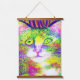 The polyester fabric displayed many wrinkles and several sharp creases throughout. At the bottom of the tapestry, I noticed a bulge in the fabric because it was not pulled tight enough before being connected to the wooden boards. It took me over an hour to spay water on the tapestry before putting it on an ironing board where I used a warm iron over a polyester cloth to remove the wrinkles and creases in the material. I was able to get out the wrinkles and creases that made that tapestry look as beautiful as its picture.