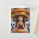 Weird Surreal Girl with a Cheeseburger Hat Scifi Postcard