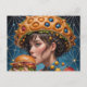 Weird Surreal Women with a Cheeseburger Postcard