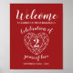 Welcome guests to your 2nd wedding anniversary party with this modern simple line art heart poster, available in several sizes. The design features white typography on dark garnet red with the words in script font and a line art heart gemstone with the words welcome to your names celebration of 2 years of love. Personalise with your own names, anniversary year and wedding date underneath. The second wedding anniversary is associated with the gemstone garnet and the heart symbolises love. Other matching anniversary items available. Line art and design by www.mylittleeden.com on zazzle.