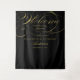 50th Anniversary Welcome wall tapestry with fancy FAUX gold foil script text. The word "welcome" is an IMAGE produced to look like it has a metallic grey foil finish, but it is printed in flat ink and cannot be edited. All other text can be fully edited. Pick your size and customise the text, or click "Customise further" to change the background colour and font size or style.