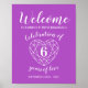 Welcome guests to your 6th wedding anniversary party with this modern simple line art heart poster, available in several sizes. The design features white typography on purple with the words Welcome in script font and a line art heart gemstone with the words welcome celebration of 6 years of love. Personalize with your own names, anniversary year and wedding date underneath. The 6th wedding anniversary is associated with the gemstone amethyst and the heart symbolizes love. Other matching anniversary items available. Line art and design by www.mylittleeden.com on zazzle.