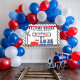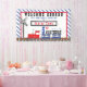 Modern, fun steam locomotive choo choo train striped "Welcome Aboard the Birthday Express" birthday party design which can be modified for any age child. The design is complimented with a red frame and a blue and white striped background. Original design by Holiday Hearts Designs (all rights reserved).