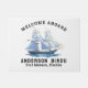 Nautical "Welcome Aboard" boat mat design features a simple, stylish navy blue and white coastal style design with boat anchor accent. Personalise the custom text with the name of your boat along with her location city and state. Makes a great boating themed gift for boat owners.