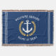 Welcome Aboard Boat Name Anchor Gold Laurel Navy Throw Blanket