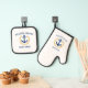 An amazing oven mitt & pot holder set featuring a custom designed nautical boat anchor, gold style laurel leaves and a gold star with "Welcome Aboard" and your personalised name, boat name or other desired text. This design is in navy blue and gold colours on white or easily edit the design to change the background colour to match your decor. Purchase the set or indivadually as needed. Makes a great gift.