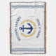 Keep warm and cosy wrapped in this nautical themed throw blanket with your personalised welcome aboard greeting and your boat name, family name or other desired text. It features a custom designed vintage boat anchor framed in gold style laurel leaves and star to complete the design. Comes in white or easily change the primary colour to match you current decor or theme.