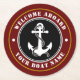 Welcome Aboard Boat Name Anchor Red Gold Style Round Paper Coaster
