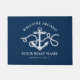 Welcome guests aboard your boat with this classic navy blue and white nautical doormat featuring a vintage style anchor entwined in a rope, and templates for the custom boat name and ship's registry.