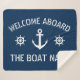 Welcome aboard boat name nautical anchor navy blue Sherpa fleece blanket. Make your own custom blanket for beach home, boat, luxury yacht, lake house, shop etc. Navy blue and white design with maritime symbols including a old ship wheels and ship anchors. Cool Christmas or Birthday gift idea for sailor, boat captain, sailing enthusiast, fisher, dad, friends or family. Available in small, medium and large.