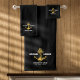 These personalised bath towels feature a classic nautical anchor design on a deep black and gold background. Customise the towels with a name or short message to create a unique gift for yourself or someone special. The soft, absorbent cotton will make your bath time a relaxing experience.