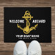 Make a statement with this stylish nautical Black and Gold doormat! A beautifully detailed anchor is the centerpiece, personalised with your boat's name and a "Welcome Aboard" greeting. The perfect addition to any boat, dock, or coastal home.