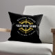 Add a touch of nautical charm to your home with this personalised pillow! Featuring a classic ship's wheel design, encircled by rope, and personalised with your boat's name, this pillow is perfect for boat owners, lake houses, beach homes, or anyone who appreciates a nautical theme. The rich Black and Gold fabric provides a sophisticated backdrop for the crisp white design.