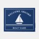 Welcome Aboard Navy Blue Nautical Boating Name Doormat