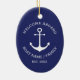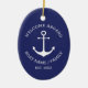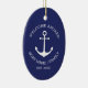 Custom Boat name or Family name, Welcome Aboard, nautical navy blue anchor white Christmas Ceramic Ornament