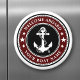 A stylish black, white and deep red round magnet featuring a custom nautical boat anchor with stars on and your personalised "Welcome Aboard" text and Your Boat Name or other desired text. Customise them with your favourite background colour and much more. Makes a great gift for any occasion.