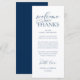 Make a heartfelt first impression at your wedding reception with this sophisticated "Welcome & Thanks" place card—designed to rest beautifully on each guest’s plate, in navy blue theme. Featuring graceful script typography and a timeless layout, this elegant card warmly greets your loved ones while expressing gratitude for sharing your special day. Ideal as a dual-purpose place card & welcome note—combine sentiment and function without cluttering your tables-cape. Designed for couples who value refined details, this card complements modern and luxe wedding themes. Print on premium card stock for a luxurious finish that guests will cherish (or even keep as a sweet keepsake!). Because love is best served with gratitude.