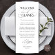 Welcome and Thanks, Wedding Dinner Thank You Card