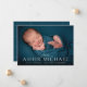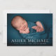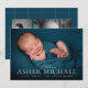 Birth announcement. Baby announcement. Baby boy. Baby girl, Gender neutral. Photo. Hello. Hello Baby. Patterned backer. Windowpane plaid. Bold. Modern. Contemporary. Blue.
