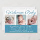Welcome Baby Boy Blue Photo Cursive Script Birth Announcement