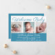 Welcome baby. A classic baby boy photo birth announcement in cerulean blue with beautiful cursive typography above your sweet newborn photograph collage. Customise the back with your favourite photo of your new infant for a lovely card.