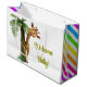 A Colourful Large Gift Bag With A Cartoon Baby Giraffe And Welcome Baby For Baby Shower Or Newborn