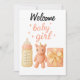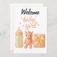Baby Girl Shower Card – Pink Baby Bottle & Stuffed Animal Design, Baby Gift Card, Pastel Baby Girl Card, Handmade Baby Shower Greeting