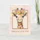 A soft and heartwarming way to welcome a baby girl, this sweet design features a watercolor-style baby giraffe with flowers gently placed around her head. The background adds subtle texture with a light pink and warm yellow giraffe pattern, giving it a soft, dreamy feel perfect for a newborn. Ideal for parents, grandparents, or friends to celebrate a new arrival, this card is both charming and tender. The inside message speaks directly to the little one with love and warmth. A beautiful jungle safari themed choice for welcoming a precious baby girl into the world.