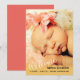 This simple and adorable baby girl birth announcements features a vertical photo frame that fills the entire card. The bottom of the card has a gold gradient and calligraphy text that reads: Welcome. Custom text, at the bottom, allows you to add the baby's name, birth date, size and parents name.