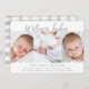 A MODERN MULTI PHOTO BIRTH ANNOUNCEMENT WITH A BEAUTIFUL HAND DRAWN CHECK BACKER.