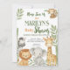 Welcome to the wild and whimsical world of baby animals! This delicate watercolor design features a cheerful gathering of jungle friends—nestled among soft tropical leaves. With their sweet smiles and gentle expressions, these adorable safari babies bring warmth, joy, and a touch of adventure to any baby shower celebration. Surrounded by soft greens and creamy whites, the scene offers the perfect blend of elegance and playful charm for your special day.