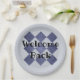 Add a personal message to a welcome back breakfast or snack for your employees with these paper plates. These plates features a sophisticated and professional blue diamond pattern. The diamonds display a tiled mosaic design against a light blue grey background which can be customised if you desire. The words "Welcome Back" appear in the centre and can easily be personalised.