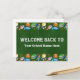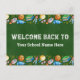 This Welcome Back to School postcard features a chalkboard theme with colourful school elements border.