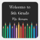 A sheet of black square stickers to welcome your students on their first day of school .Those ones feature coloured pencils at the bottom . Personalise them with your grade level and name .