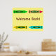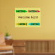 Four blocks of customizable text highlight this Welcome Back crayon design poster suitable for any classroom.