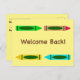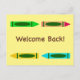 The rear of this Welcome back school themed postcard has four lines of editable text.