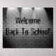 Text reads: "Welcome Back To School!" on this black and white poster print on a cool brick wall background with spotlights. Or customise with any text. Shown black grunge paint bold text and/or colour can easily be changed also. Easily create your own personal message, award, or sign, or make one for the perfect gift for someone special. Lots of possibilities!