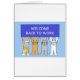 A row of different cartoon cats, standing up on their back paws. The cats are holding up a sign that says 'Welcome back to work'. The image has a blue background.